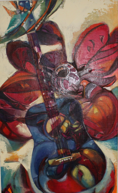 Description: Oil on linen. The painting depicts a beloved guitar stilled owned by the artist. This piece was purchased by the Town after it was created during an annual National Culture Days event.