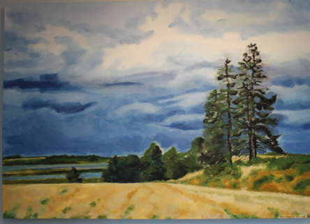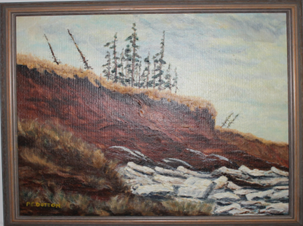 Description: Acrylic on canvas. A melancholy piece portraying the wonder and strength of PEI’s delicate cliffs under winter’s harsh conditions. This piece was donated by Ann Dutton the wife of P.E. Dutton, the artist.