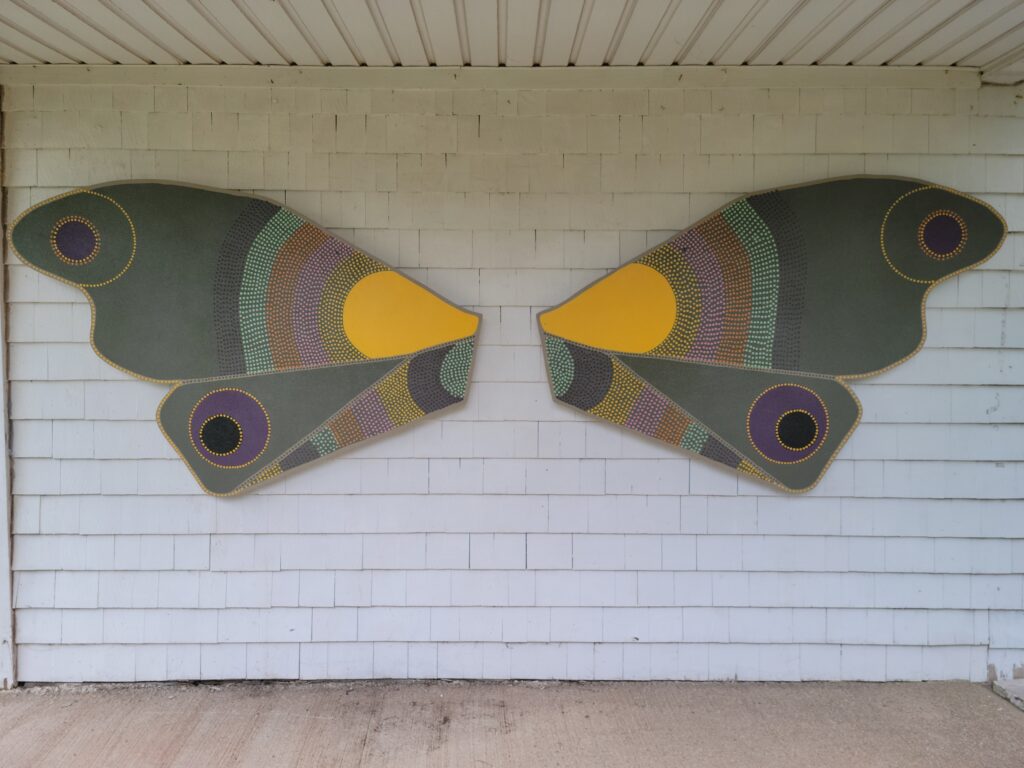 MOTH WINGS (2022)Artist/Designer: Ryan McAdam YoungLocation: Cotton Park (57, Bunbury Road)Description: This beautiful installation represents these colourful insects that are abundant in Cotton Park during summertime. This public art is also a fabulous photo prop for residents to get their photos taken with the wings!